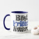 Regalo para un amigo. Regalo de premio para un Mejor Amigo. Premio a Mejor Amigo es el mensaje gráfico en negrita en esta taza azul, gris y blanca.