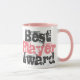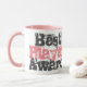 Regalo de premio para un Mejor Jugador. El Premio al Mejor Jugador es el mensaje gráfico en negrita en esta taza rosa, gris y blanca. Mejor jugador del equipo. Jugador del partido.