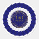 Cinta galardonada, azul y blanco-1ª (primera)-Premio de la cinta redonda con texto dorado y lentes. En el centro del premio, el texto dice: 1er lugar. Circular alrededor de los bordes dorados más texto dice: ¡Felicidades! dos veces. Este diseño galardonado está disponible en varios colores y estilos. Está disponible en los premios 1er, 2º y 3er lugar. El texto que rodea o bien dice: Felicitaciones o Runner Up. ¡Elige tu tamaño de Pegatinas redondos! O usar este diseño en cualquiera de los productos de Zazzle.