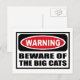 Atención con la tarjeta postal de los GATOS GRANDES que puedes personalizar en www.WarningSignShirts.com y presenta una señal de advertencia roja y negra y PREOCUPACIÓN DE LOS GATOS GRANDES en letras negras audaces para avisar al mundo. También puede personalizar su propia tarjeta postal con el texto que desee.