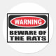 Atención al Pegatina RATS: puedes hacer un personalizar en www.WarningSignShirts.com y presenta una señal de advertencia roja y negra y CUIDADO DE LAS RATAS en negrita y en negrita para advertir al mundo. También puede personalizar a su propio Pegatina de signos de advertencia con el texto que desee.