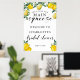 Magnífica poster de bienvenida con limones y el texto "Encontró su aprieto principal". Personalizado con su nombre y fecha de evento.
