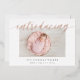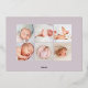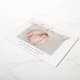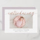 Los modernos y elegantes anuncios de nacimiento presentan tu foto favorita horizontal o paisajista orientada al neonato con "presentando" a través de la parte superior en letras de guiones de caligrafía de Relieve metalizado de oro rosa. El nombre del bebé y las estadísticas de nacimiento aparecen debajo. Agregue seis fotos adicionales a la parte posterior en un diseño de collage o elimine para dejar en blanco.