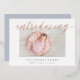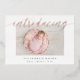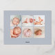 Los modernos y elegantes anuncios de nacimiento presentan tu foto favorita horizontal o paisajista orientada al neonato con "presentando" a través de la parte superior en letras de guiones de caligrafía de Relieve metalizado de oro rosa. El nombre del bebé y las estadísticas de nacimiento aparecen debajo. Agregue seis fotos adicionales a la parte posterior en un diseño de collage o elimine para dejar en blanco.