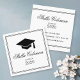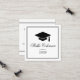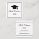 Moderna tarjeta de nombre de graduación con gorra negro y el nombre del graduado resaltado con un elegante tipo de letra de caligrafía.