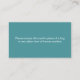 A veces, incluso la empatía tiene sus límites. Esta tarjeta de visita personalizado en un verde azulado tranquilizador indica educadamente su capacidad emocional actual. La parte frontal dice "ALLÍ, ALLÍ" con letras más pequeñas encima "[SU NOMBRE]" y el mensaje directo: "NO PUEDE TRATAR CON TUS EMOCIONES HOY". Al revés ofrece una alternativa humorística al apoyo emocional: "Por favor, acepte esta carta en lugar de un abrazo o cualquier otra forma de consuelo humano". Perfecto para aquellos días en los que necesitas establecer claros límites emocionales con un toque de humor, estas tarjetas personalizadas transmiten el mensaje. ¡Simplemente agrega tu nombre!
