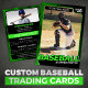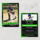Crea una tarjeta de intercambio personalizada de béisbol para celebrar a tu jugador favorito. Esta plantilla de personalizable le permite agregar el nombre, equipo, estadísticas y foto de su jugador. El diseño verde y negro es elegante y profesional, perfecto para mostrar los logros de un jugador.