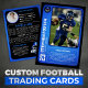 Crea la tarjeta de intercambio perfecta para tu jugador de fútbol favorito! Esta plantilla de personalizable presenta un esquema de color azul y negro negrita, un diseño limpio y espacio para todas las estadísticas importantes. Simplemente sube la foto de tu jugador, agrega su nombre y detalles, e imprime tus propias tarjetas de intercambio únicas.
