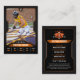 ¡Crea una tarjeta de intercambio única y memorable para conmemorar a un destacado futbolista! Este diseño de personalizable presenta un elegante esquema de color negro y Naranja con un fondo negro texturizado, lo que lo hace perfecto para las estadísticas y la imagen de cualquier jugador.