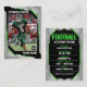 Esta audaz y moderna plantilla de tarjeta de intercambio de fútbol es perfecta para mostrar a tu jugador favorito. Personalizar con tu propia foto, nombre, estadísticas e información del equipo. La combinación de colores verde y negro destaca, lo que lo convierte en un gran regalo para los aficionados al fútbol.