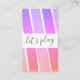Hacer que conocer a las nuevas madres sea menos incómodo y estresante con estas cartas de fecha de juego de arco iris - mostrando "juguemos" en el frente con rayas pintadas a mano en el fondo y al fondo incluye detalles de contacto. Simplemente personalizar agregando tu propio nombre e información de contacto y prepárate para repartirlo en tu próxima oportunidad de red primaria.