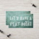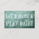 Llenando la mayor parte del frente de esta carta, en un tipo de letra negro abierto, chunco y juguetón, un superpuesto gráfico de tipografía dice "¡Hagamos una cita de juego!" El fondo de ambos lados ha sido cubierto con una imagen gráfica de fondo rústico y agria, angustiada, en tonos verdes. Los campos de plantilla se configuraron para sus datos personales en la parte posterior, utilizando un tipo de letra agradable, todos los mayúsculas y minúsculas. Puede cambiar el tipo de letra y el tamaño de las palabras si desea... sólo tiene que hacer clic para obtener más información sobre la personalización para acceder a los campos de edición. Todos los detalles se agregaron por separado y se dejaron sin bloquear para darle el máximo control de diseño. Por favor, no dudes en contactarte si necesitas ayuda. // 21 //