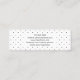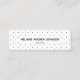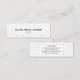 Elegante Moda moderna de diseño de dos caras Mini tarjetas de visita de 1" x 3" con información de contacto en la parte posterior, diseñadas con puntos negros de moda en un fondo blanco, personalizable completo y configuradas como una plantilla para su fácil personalización. El color de fondo puede cambiarse a cualquier otro.