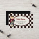 Tarjeta de visita de la fecha del juego del muchacho elegante, hecha en un negro y del modelo a cuadros blanco. Un área de texto oval apagado blanca, en el centro, se adorna con el borde coloreado marrón y los gráficos lindos del país, de un niño pequeño que sostiene un monopatín. Personalice el texto para el niño. Gran manera de permanecer en contacto con otras mamáes y de arreglar fechas del juego, fiestas de cumpleaños, y los gallineros que se sientan del bebé.