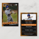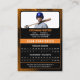 Crea una tarjeta de intercambio personalizada de béisbol para celebrar a tu jugador favorito. Esta plantilla de personalizable le permite agregar el nombre, equipo, estadísticas y foto de su jugador. El diseño Naranja y negro es elegante y profesional, perfecto para mostrar los logros de un jugador.