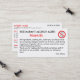 Avise claramente a un restaurante de su alergia al cacahuete además de tener información de emergencia en la espalda.