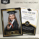 ¡Celebra tu graduación con estilo con esta elegante tarjeta de intercambio de oro y negro! Completamente editable, este keepsake presenta un diseño sofisticado, texto de personalizable y un lugar para la foto del graduado. Perfecto para invitaciones, favores de fiesta o regalos únicos de graduación, esta elegante carta hace de tu graduado la estrella del momento!