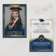 ¡Celebra tu graduación con estilo con esta elegante tarjeta de intercambio de oro y azul! Completamente editable, este keepsake presenta un diseño sofisticado, texto de personalizable y un lugar para la foto del graduado. Perfecto para invitaciones, favores de fiesta o regalos únicos de graduación, esta elegante carta hace de tu graduado la estrella del momento!