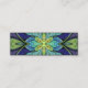 Faux hojas de vidrio teñidas de verde y turquesa enmarcan una flor central en tonos azules y violetas.