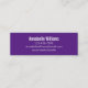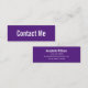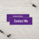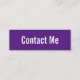 Esta mini tarjeta real de negocios en color púrpura dice 'contáctame' en la parte delantera de la tarjeta de visita. La parte posterior tiene cuatro líneas de texto en negro para tu nombre e información de contacto como tu número de teléfono, dirección de correo electrónico y/o identificador de medios sociales. Todo el texto se puede editar o eliminar.