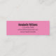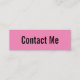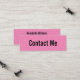 Esta mini tarjeta de visita rosa dice 'contáctame' en la parte delantera de la tarjeta de visita. La parte posterior tiene cuatro líneas de texto en negro para tu nombre e información de contacto como tu número de teléfono, dirección de correo electrónico y/o identificador de medios sociales. Todo el texto se puede editar o eliminar.