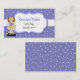 Tarjeta de fecha de juego de chica adorable hecha con lavanda, con fondo de punto de polka blanco. Una franja blanca recorre el medio, con un área de texto decorativo blanco rodeada de lavanda. Dulces gráficos de campo de una niñita sosteniendo flores púrpuras, decoran el lado izquierdo de la tarjeta. Personalice el texto para una gran carta de fecha de juego de mami o chica.
