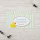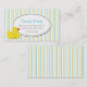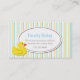Tarjeta de visita elegante de la fecha del juego de niño, hecha en un amarillo, un blanco, y un modelo de la raya del aquamarine. Un área de texto oval blanca, en el centro, se adorna con un ducky de goma del dibujo animado lindo, en el izquierdo inferior. Personalice el texto para sí mismo, como tarjeta de la mamá, o para su niño. Gran manera de permanecer en contacto con otras mamáes y de arreglar fechas del juego, fiestas de cumpleaños, y los gallineros que se sientan del bebé.
