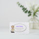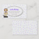 Tarjeta de visita de la fecha del juego del chica elegante, hecha en un modelo de lunar púrpura, verde, y blanco. Un área de texto oval blanca, en el centro, se adorna con los gráficos lindos del país, de una niña que sostiene las flores. Personalice el texto para sí mismo, como tarjeta de la mamá, o para su niño. Gran manera de permanecer en contacto con otras mamáes y de arreglar fechas del juego, fiestas de cumpleaños, y los gallineros que se sientan del bebé.