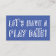 Llenando la mayor parte del frente de esta carta, en una fuente abierta, divertida y divertida de color blanco, un superpuesto gráfico de tipografía dice "¡Hagamos una cita de juego!" Los campos de plantilla se configuraron para sus datos personales en la parte posterior, utilizando un tipo de letra agradable, todos los mayúsculas y minúsculas. Puede cambiar el tipo de letra y el tamaño de las palabras si desea... sólo tiene que hacer clic para obtener más información sobre la personalización para acceder a los campos de edición. ¡Y por supuesto puedes cambiar el fondo a cualquier color que quieras! Todos los detalles se agregaron por separado y se dejaron sin bloquear para darle el máximo control de diseño. Por favor, no dudes en contactarte si necesitas ayuda. // 21 //