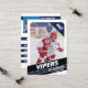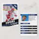 Padres de jóvenes jugadores de hockey sobre hielo en pequeñas ligas pueden mostrar orgullosamente los logros de sus hijos en el hielo usando estas tarjetas de intercambio de personalizable azul y blanco. Las fotos de la parte delantera y trasera se pueden ajustar para destacar a tu jugador joven, permitiendo un número de Jersey cambiable. Casi todo el texto de la parte posterior de la tarjeta es editable, cubriendo estadísticas del jugador, biografía y posición. Estas tarjetas son amplias para compartir entre amigos y familiares, y para que tu hijo cambie con otros jóvenes que tengan sus propias tarjetas de intercambio colectivas. Esta colección forma un conjunto único de tarjetas de hockey sobre hielo, perfecto para oportunidades de regalos distintivos.