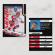 Los padres de los jugadores de hockey sobre hielo de la liga pequeña pueden orgullosamente compartir los logros de sus hijos en el campo con estas tarjetas de intercambio de personalizable rojas y negras. Ambas fotos, frontal y posterior, pueden ser alteradas para mostrar tu propia pequeña liga. Casi todo el texto de la espalda se puede modificar, incluyendo estadísticas de los jugadores, biografía, posición.Proporcionando mucho para distribuir entre amigos y parientes, así como para que su hijo los cambie con otros niños que también tienen tarjetas de intercambio coleccionables. Crea una distintiva colección de tarjetas de hockey sobre hielo, haciendo regalos únicos.