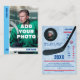 Crea tu propia tarjeta de intercambio de hockey sobre personalizable añadiendo tus propias estadísticas de hockey y fotos. La parte posterior de la tarjeta muestra hielo con marcas de patinaje como fondo. 25 tarjetas por paquete que te deja suficiente para repartirlas a amigos y parientes como recuerdo (a los abuelos les encantará), o para que tu pequeño jugador de hockey de la liga compre con sus compañeros de equipo si también tienen su propio juego personalizado. Disponible en otros 7 colores.