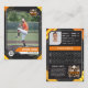 Esta tarjeta de personalizable para el comercio de béisbol es perfecta para celebrar a tu jugador favorito. Con su diseño negro y Naranja audaz y un espacio para la foto, las estadísticas y el fondo de un personalizable de un jugador, esta carta impresionará a cualquier hincha de béisbol. Perfecto para regalos de equipo, noche mayor o sólo una forma divertida de mostrar tu apoyo para tu jugador favorito.