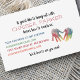 ¡Una tarjeta de juegos personal para niños y padres que compartan su información con amigos! Las huellas de colores del arcoiris que reproducen la tarjeta de fecha ofrecen espacio para toda su información de contacto para que sus hijos puedan mantenerse en contacto con sus amigos durante las vacaciones de verano o con nuevos amigos que conozcan. Esta bonita tarjeta de visita para madres y niños incluye un adorable conjunto de huellas dactilares estampadas en colores arcoiris en la parte delantera y mucho espacio para tu correo electrónico, números de teléfono, dirección, o cualquier otra información que quieras incluir en la parte trasera.