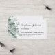 Preséntese con estilo y gracia cuando cambie estas sofisticadas tarjetas de visita. La información de nombre y contacto se encuentra en una tipografía clásica decorada con el diseño de hojas de eucalipto natural. Haga una impresión soleada con estas elegantes tarjetas de visita.