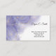 Esta tarjeta de negocios se muestra en una impresión de arte abstracto púrpura y dorado.