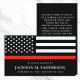 Esta tarjeta conmemorativa de oración de fotos del oficial de bomberos de personalizable honra la vida y el servicio de un bombero caído. El frente muestra el nombre del oficial, el nacimiento y el final de las fechas de vigilancia, y la delgada bandera de la línea roja de la policía. La parte trasera incluye una oración de personalizable. Esta tarjeta sirve como un recordatorio duradero de la valentía y el sacrificio del bombero, proporcionando comodidad a la familia, amigos y colegas.