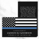 Esta tarjeta de rezo de fotos de los oficiales de policía de personalizable honra la vida y el servicio de un oficial caído. En la parte delantera aparece el nombre del oficial, el nacimiento y el final de las fechas de vigilancia, y la delgada bandera azul de la policía. La parte trasera incluye una oración de personalizable. Esta tarjeta sirve como un recordatorio duradero de la valentía y el sacrificio del oficial, proporcionando comodidad a la familia, amigos y colegas.