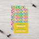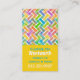 Tarjeta de negocios moderna y colorida para la creación de redes de mamás, hecha en un estilo vertical, con un fondo amarillo. Gráficos de capas coloridas de un patrón de chevron, decora la parte superior, de la tarjeta, con texto personalizado verde y blanco, abajo, listo para personalizar. Gran carta para entregar a otras madres por organizar la niñez, jugar dátiles, fiestas y más.