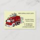 Esta tarjeta de visita deliciosa de la mamá muestra un coche de bomberos del dibujo animado con un pingüino que sostiene la manguera del agua. ¡Hecho en un fondo amarillo, esta tarjeta de visita de la diversión es perfecta si usted tiene niñas o muchachos!