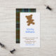 Niños de encargo que llaman/tarjeta de fecha del juego. Una silueta marrón simple de un oso de peluche adorna el top de la tela escocesa marrón y azul de la tarjeta y de un tartán bonito en la parte posterior. Personalice el texto, con la información de su niño. Hace las grandes tarjetas para arreglar a fiestas de cumpleaños y el juego fecha con otras mamáes.