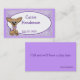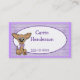 Tarjeta de visita de los niños muy lindos con las rayas de la lavanda, el área de texto oval blanca y un perro dulce de la chihuahua del dibujo animado. El texto es completamente adaptable de estilo, tamaño y color.