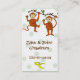 Esta tarjeta de visita adorable del perfil tiene dos monos del dibujo animado de la diversión el colgar de un árbol, contra un fondo verde del lunar. Aliste para modificar para requisitos particulares con el nombre y el Info de su niño. Tarjeta de visita muy dulce del perfil/tarjeta del recinto.