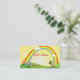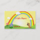 Gráficos dulces de un arco iris, de flores, y de un perro de perrito, en un fondo amarillo y verde. El texto coloca todo listo para modificar para requisitos particulares para su niño, añade más campos del texto en el frente o la parte posterior de esta tarjeta de visita adorable.