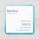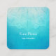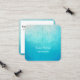 Fondo de Mandala turquesa con guión de letra decorativo en la parte delantera de la tarjeta de visita cuadrada redondeada. Retroceso blanco con borde personalizado e información personal en un diseño moderno