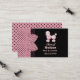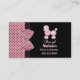 Tarjeta elegante del establecimiento de una red de la mamá hecha en un fondo negro, en el derecho, y un rosa con los lunares negros, en el lado izquierdo y la parte posterior. Los gráficos de una vertical de funcionamiento de la cinta negra y rosada del lunar entre los dos fondos se adornan con un arco rosado y negro del lunar. Un caniche rosado de mirada mullido adorable adorna el lado del superior derecho de la tarjeta, con el texto rosado de encargo bajo él. Personalice esta tarjeta de la diversión como una gran manera de permanecer en contacto con otras mamáes para arreglar los fiestas, juego fecha, y la sentada del bebé.