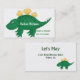 Tarjeta de dátiles de la mamita hecha en blanco, con un dinosaurio verde y amarillo colorido decorando la parte delantera y trasera de la carta. El texto en verde y blanco es totalmente personalizable para satisfacer sus necesidades. Magnífica carta de mamá, que es genial para organizar dátiles de juego, con otras mamás, y copas de canguro.