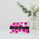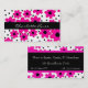 Tarjeta de visita colorida de la mamá/tarjeta del establecimiento de una red, hecha en rosado, blanco, y negro, con las flores grandes y los lunares rojos y negros. Una raya negra corre a través del centro como campo del texto. Gran fecha del juego de la mamá, tarjeta del establecimiento de una red lista para personalizar con su propia información.