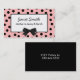 Tarjeta de visita elegante de la mamá hecha con un marco rosado caprichoso, con los lunares negros alrededor de un área de texto blanca. Los gráficos de un arco negro en la parte inferior del bastidor dan a esta tarjeta una mirada retra de la moda. El texto negro en el texto delantero y blanco en la parte posterior es adaptable. Personalice todo el texto, en el frente y la parte posterior, para adaptarse a sus necesidades. Grande para arreglar el juego fecha con otras mamáes.
