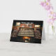 Órgano de tubo grande y cuatro manual con pechos de parada, pistones, pestañas, zapatos de expresión y pedales. Encima de la consola están las palabras PULSAR CUALQUIER TECLA en letras blancas. Adentro están las palabras de un tipo de letra negro grunge: "Oh, lo siento, escogiste el equivocado. El mundo terminará ahora en 20 segundos".